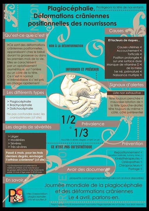 Pour plus d’information sur la Plagiocéphalie et les déformations crâniennes positionnelles n’hésitez pas à visiter le site de l’association Plagiocéphalie Info et soutien : http://association-plagiocephalie-info-et-soutien.fr/